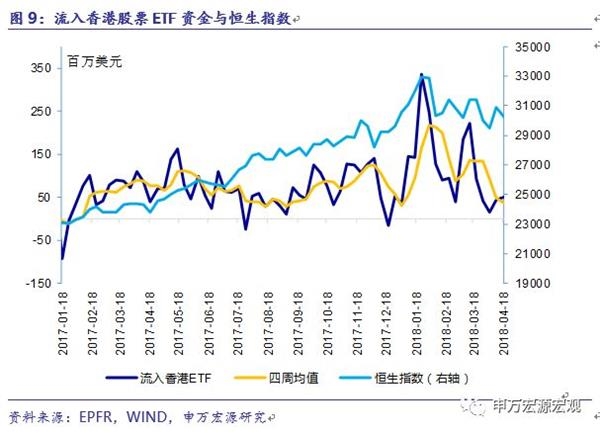 4月18日当周,香港股票ETF净流入0.50亿美元,这是连续第17周净流入。前一周香港股票ETF净流入0.44亿美元。四周均值净流入0.38亿美元。