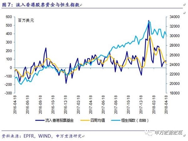 4月18日当周,香港股票基金净流入0.79亿美元,四周均值净流入0.57亿美元。截至4月18日收盘,恒生指数收于30284.25点,和前周相比下跌1.99%。