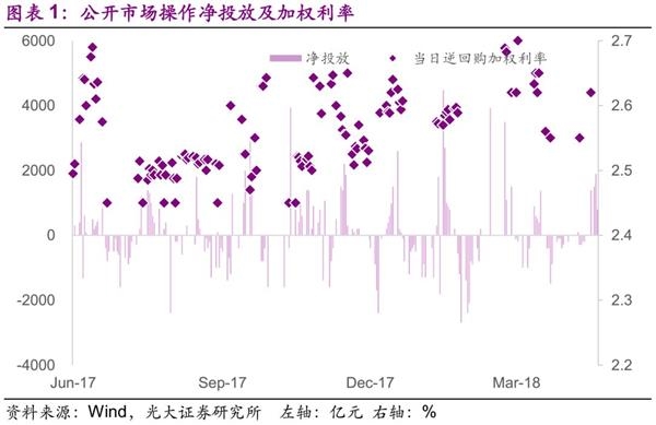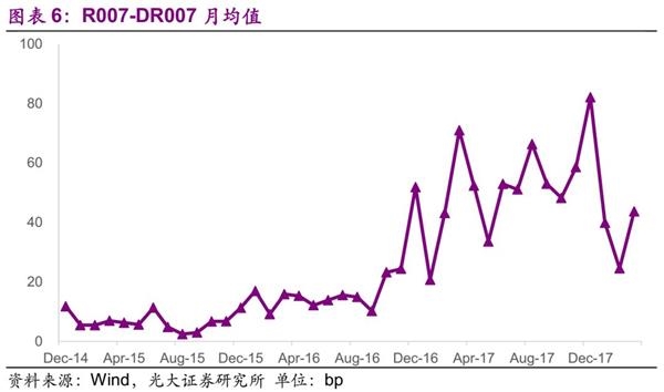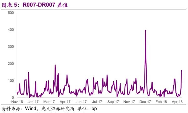 我们在3月31日报告《金融监管进行时》中提到过,年初以来DR007的下行更多地是源于维稳因素,或是说人民银行没有得到足够长的时间窗口回笼流动性。进入2018年之后,银行间市场对于回购资金的需求周期性地下降,但跨年资金尚未到期。尽管1月1日-9日期间人行保持OMO零操作,尽可能快地回笼资金,但是资金仍不可避免地回落。此后的1月18-19日为“二中全会”的会期,1月下旬又进入了春节走款阶段,人行需要提供足量的流动性(期间还叠加着资本市场的快速下跌)。春节假期于2月21日结束,此后又是“三中全会”的会期,紧接着又进入“两会”阶段。“两会”结束至3月末,除了3月22日为了加息而象征性地投放了100亿元,其余日期一直保持至3着OMO零操作,体现出人民银行平稳回笼过量流动性的意图。4月中旬,又有习总书记出席的2018博鳌亚洲论坛,也不适宜对银行间市场流动性进行收缩。显然,年初以来资金的宽松是“可以解释”的。