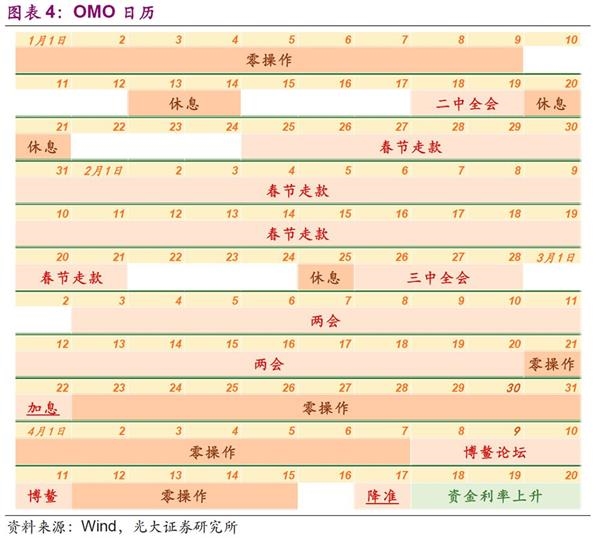 其中,“无法解释”是说下滑的幅度无法用DR007的月内周期、重要时间点前的维稳等传统因素进行解释;“予以确认”是说在DR007下滑之后人行仍利用OMO、MLF等工具净投放资金(显然春节前的一段时间并不属于这个范畴)。当出现这种情况时,说明DR007的下行是人行货币政策意志的真实体现。