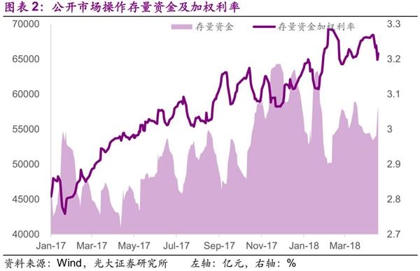 截至2018年4月20日,未到期回购操作(含MLF和国库现金定存,下同)共26笔,存量资金为5.817万亿元,存量资金的加权利率为3.2164%,前值(2018年4月13日)为3.2691%,资金利率下行5bp。