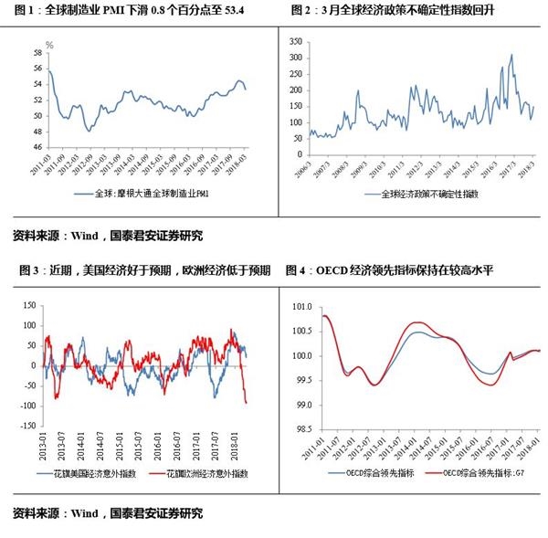 欧洲略有回落,但美国和新兴市场经济强劲,全球经济仍处在相对景气区间。欧洲、日本制造业PMI有所回落,属于高位震荡,美国和新兴经济体领先指标和PMI保持强劲,全球经济不改高景气之势。