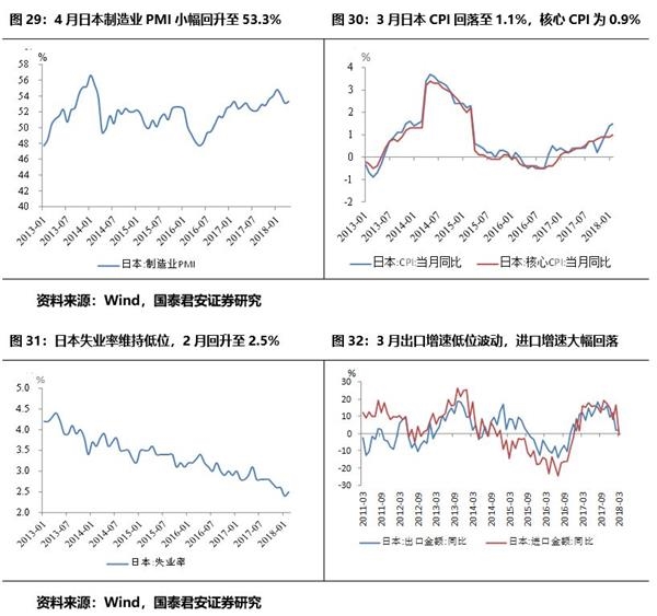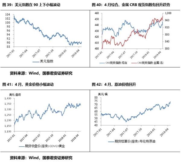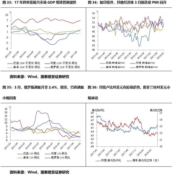 通胀预期升温。欧美通胀回升,其中美国回升至2.4%,日本通胀回落,新兴经济体通胀平稳。全球朱格拉周期下温和再通胀,大宗(包括原油、金属等)价格处于持续上升通道。