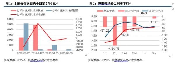 上周(4月21日至4月28日)7D逆回购到期4200亿元,63D逆回购到期1000亿元;央行展开7D逆回购操作2500亿元,周内逆回购净回笼2700亿元。上周三(4月25日)央行下调部分金融机构率以置换中期借贷便利,根据央行测算净释放资金近4000亿元。