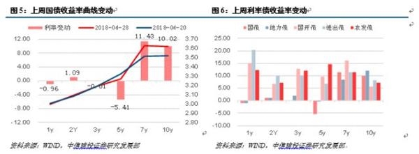 在降准的利好迅速消化后,上周(4月23日至4月29日)债券市场迎来调整期。一方面,周初资金面延续紧张态势,债市回吐了涨幅,而周三降准实施后,资金面紧张情况缓和,短端利率随之下行,全周来看变化不大;另一方面,资金面压力、资管新规等因素对降准带来的债市狂热情绪起到冷静作用,加上周美债利率突破3%,全球债券利率上行也对国内债券情绪产品不利影响;长端利率呈现上行态势。