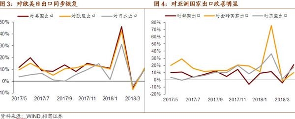 (1)4月出口同比增速为12.9%,略好于我们预计的9.8%,人民币值同比增速为3.7%,整体好于市场预期。分国别来看,4月对美、欧、日出口增速分别为9.7%、10.9%、9.6%,对东盟、巴西、印度、俄罗斯出口同比分别为17.7%、15.5%、6.5%、12.7%,整体对亚洲国家出口更加强劲,体现了贸易链条复苏的积极影响,对印度、俄罗斯出口增速有所回落。