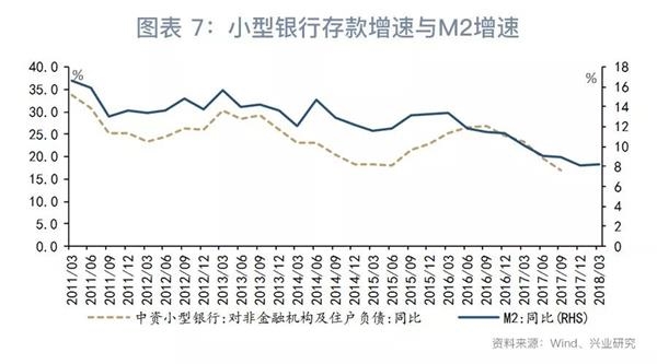 那么,年内准备金率是否有继续下调的空间?我们可以从小型银行资产负债表的角度进行分析。从存款来看,小型银行存款增速与M2增速密切相关。尽管到2018年12月M2增速可能在低基数的影响下出现一定程度的跳升,但在年内大部分时间里M2增速可能继续徘徊在9%以下的水平。因此,2018年小型银行存款增速可能略低于2017年。