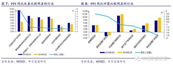 4月PPI同比上涨3.4%,较3月扩大0.3个百分点。尽管4月PPI环比下跌0.2%,但由于基数回落,PPI同比有所反弹。其中,生产资料PPI上涨4.5%,较3月扩大0.3个百分点。主要行业中,煤炭开采、有色、燃气生产和供应业4月PPI小幅回落,分别较3月回落1.4、1.8、1.1个百分点。钢铁和造纸行业PPI小幅回升,分别较3月回升1.7和1.2个百分点。受全球油价上涨影响,石油和天然气开采业PPI大幅回升8.3个百分点。