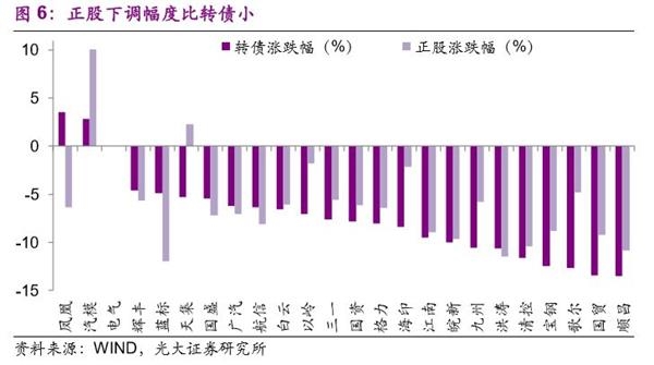 在此期间转债平价平均跌幅为-15.11%,而转债价格也应声下跌平均跌幅为8.24%,转债价格中枢由最初114.35元下跌至最低点104.32元,国投、国电、川投等板块转债跌幅居前。值得注意的是,高平价转债往往跌幅更大,而低平价转债估值调整则更为明显。在此次下跌中,转债的估值不仅没有被压缩,转股溢价率反而上升了14.76个百分点。在当时诸多转债品种中,仅工行、国投、川投、重工、同仁5只转债估值遭受了不同程度的压缩。