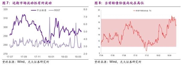 在当前信用违约潮及资管新规下,投资者对于潜在的流动性对转债市场的冲击的担忧不无道理。从前两次流动性冲击的表现来看,高平价转债跌幅总是居前,因此当前转债市场若短期内遭遇流动性冲击,预计医药与TMT行业个券将面临较大回撤风险。当前转债市场股性估值尚处在高位,主要原因在于大盘券及旧券估值普遍处于高位,而新券估值绝大部分较低,若在流动性冲击下,预计金融、周期等板块大盘券及旧券估值有望获得一定的压缩性提升个券性价比,而新券预计估值压缩力度较小。
