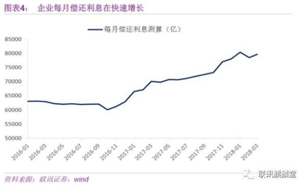 除此之外,存量的利息压力也在不断累积。根据我们的测算,当前非金融企业每月偿还债务仅利息部分就占约新增社会融资50%左右,占约10%的存量。