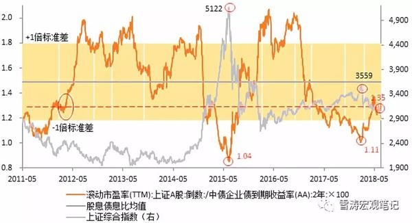 当前上证综指股息比7年期AA债息为1.35(2018年6月20日),位于7年历史均值(1.49)的下方0.5个标准差左右,也就是说股票相对于债券略有高估,股指仍以下方风险为主,但从统计概率上看指数的下方空间已经比较有限。当前A股股息比债息的静态水平和动态趋势最类似于2012年3月,当时5个月后股息比债息震荡见顶达到2.0的极值(2012年8月),9个月后上证综指弱势震荡见底(2012年12月),15个月后股息比债息二次见顶后回落(2013年6月),同时上证综指开启趋势性大回升。预计2018年底-2019年1季度,A股股息比债息将震荡见顶。2019年年中,中国经济的商业周期将进入衰退期的末尾,股息比债息将逐渐顶部回落,同时美联储加息和美股调整也接近尾声,彼时或是beta投资者的最佳入场时间。