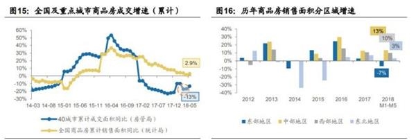 东部地区前5月累计销售面积同比下滑6.7%,累计同比增速实现17年6月以来首次回升,且单月同比增速由负转正,东部增速底部基本确认。中部、西部、东北累计同比上涨13.3%、9.9%、3.3%。
