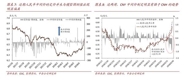 由于近期人民币中间价的定价并未明显偏离模型预测值,且在最近的交易日中人民币中间价的制定也明显有强于离岸人民币的趋势,梁红团队认为,本轮贬值应该是源于市场自发动力,而并非政策有意为之。