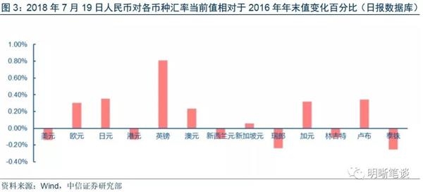从国际环境来看,美元指数的反弹是本轮人民币汇率走弱的重要原因。如上文所说,美元作为人民币的“背面”,二者高度负相关。美元指数从2016年末至2018年2月中旬从高点的103.29开始走弱14%以上,至下滑的阶段性低点88.57。同期人民币汇率从低点6.96回升幅度超过9.5%,至6.30。而从2018年3月底,美元指数走强升幅超过7%,至当下95.07。同期人民币汇率从高点6.30贬幅达6.5%,至6.7066。由于人民币对包括欧元、日元等多种货币的一篮子保持币值稳定,因而相对美元贬值。