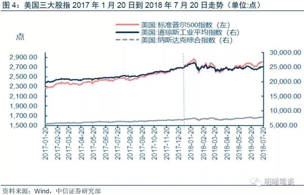 国内基本面方面,随着供给侧改革的不断推入,我国实行了结构性减税,结构性监管,对中小微企业精准滴灌,营造更好的创新环境等,我国基本面韧性仍存,不必担忧人民币汇率过大幅度贬值。立足内需是我国的未来经济发展方向,消费有可能成为未来经济支撑点。近年来,随着扩大内需,创新驱动供给侧改革等对中国经济的拉动不断上升,在这种政策指引下,中国内部的投资、消费对经济的贡献逐步上升。从7月16日公布的数据来看,2018年6月消费略超预期。虽然消费改善的其中一部分原因可能是假期效应,(能否持续不确定,所以信用收缩的影响仍将持续。)我国的贸易依存度已从2006年的64%下降到去年的33%,低于42%的世界平均水平,经常项目顺差占GDP的比例也从2007年的约10%下降到去年的1.3%。并且为叛国的货物与服务净出口对经济的净增长率仅为9.1%。经济的内生潜力较大。