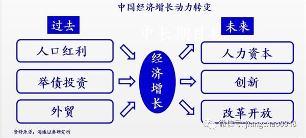 那这就进入到第四部分,就是理解中国的经济转型,到底中国经济的希望在哪里?中国过去靠的是人多,靠的是举债,以后中国新增人口变少了,但大家都有知识,大学生很多,我们以后应该靠创新,靠改革和效率提升来驱动我们的经济。