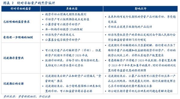 (3)积极清理到期日超过2020年底的非标资产,获取监管鼓励:央行配套细则鼓励理财积极化解存量非标回表,并提出将在MPA考核中调整有关参数并支持银行发行二级资本债补充资本作为监管鼓励。尽管实在无法回表的资产监管将允许过渡期后一事一议予以解决,但是大部分银行还是会积极响应监管要求,获取响应的监管指标奖励。