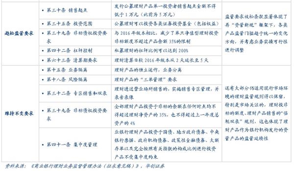 (二)相比原理财监管要求有趋严、有放松、也有维持不变