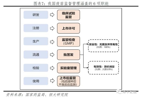 整体而言,2011年我国首次通过世卫组织国家疫苗管理体系评估,并于2014年通过该体系复评,我国疫苗管理体系已初步形成。目前我国疫苗监督管理涵盖上市许可、批签发、上市后监管(包括接种后不良反应监测)、实验室管理、监管检查(GMP)和临床试验监管6项职能,覆盖了从疫苗研发到使用的各个环节。