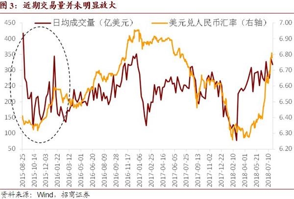 从交易量的角度来看,6月至今相较此前一段时间并未出现明显的放量,日均成交量维持在300亿美元上下,并没有出现恐慌时的抛售潮。反观“811”汇改之后出现的恐慌情形,在岸外汇市场日均成交量由此前的150亿美元上下,快速跳升至400亿美元以上。