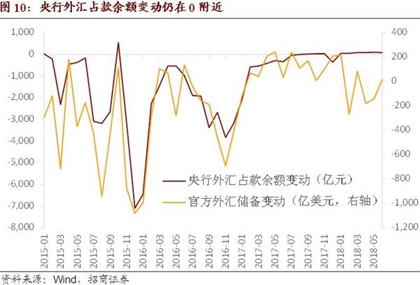 4、6月央行外汇占款余额变动为+76亿元,仍维持在0附近的较低水平之上符合我们的预判,即便在6月人民币汇率出现剧烈贬值的情况下,央行也并未直接进行干预。6月末央行官方余额为3.11万亿美元,当月增加15亿美元,6月汇率折算因素构成小幅负贡献。