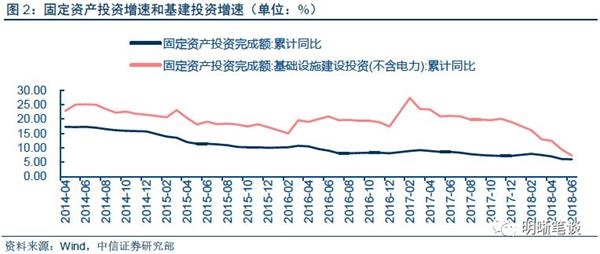若后续基建项目推动投资增速回升,PPI是否将再度上行?2018年上半年投资增速持续回落,固定资产投资增速从2月份的7.9%下降到6月的6%,基建投资增速则从16.10%快速下降到6月份的7.3%,投资增速的下降表明投资对于工业的需求不断走弱,同时导致PPI下降。但后半年随着积极财政政策更加积极,基建投资补短板不断深入,基建以及固定资产投资增速将回升,投资对于工业品的需求或将走强,PPI可能面临上行压力。