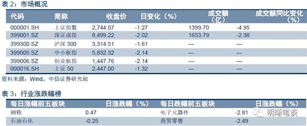 2018年8月8日,银银间质押回购加权利率大体下行,隔夜、7天、14天、21天、1个月、3个月分别变动-17.96BP、-0.1BP、-6.25BP、-1.7BP、-2.33BP、2.56BP至1.40%、2.25%、2.16%、2.14%、2.46%、2.43%。当日国债收益全面上涨,1年期、3年期、5年期、10年期国债分别变动2BP、4.24BP、6.11BP、3.46BP至2.62%、3.06%、3.21%、3.52%。上证综指收跌1.27%至2744.07,深证成指收跌2.02%至8499.22,收跌2.14%至1447.76。周三央行净回笼1200亿元,当日未开展公开市场操作,当日无逆回购到期,有1200亿3个月国库定存到期。央行公告称,目前银行体系流动性总量处于较高水平,可吸收中央国库现金管理到期等因素的影响,2018年8月8日不开展公开市场操作。