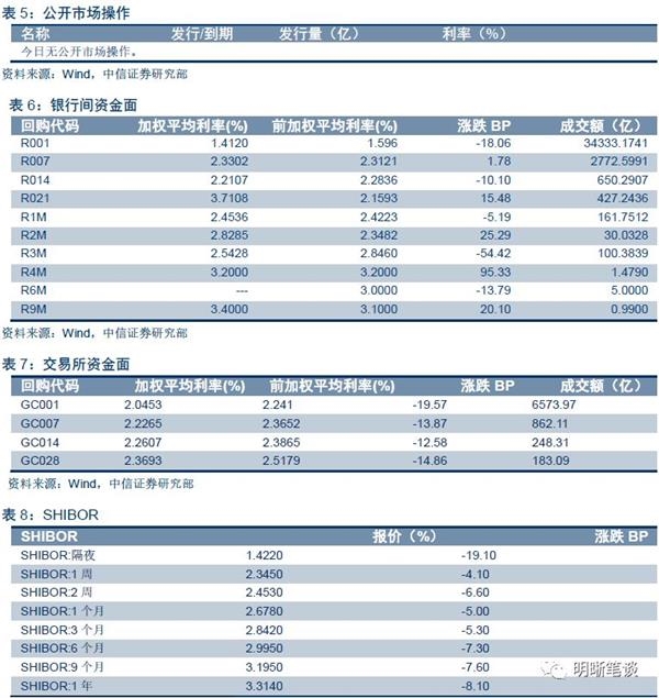 【流动性动态监测】我们对市场流动性情况进行跟踪,观测2017年开年来至今流动性的“投与收”。增量方面,我们根据逆回购、SLF、MLF等央行公开市场操作、国库现金定存等规模计算总投放量;减量方面,我们根据2018年3月对比2016年12月M0累计增加4388.8亿元,外汇占款累计下降4473.2亿元、财政存款累计增加5562.4亿元,粗略估计通过居民取现、外占下降和税收流失的流动性,并考虑公开市场操作到期情况,计算每日流动性减少总量。同时,我们对公开市场操作到期情况进行监控。