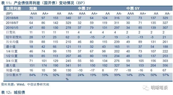 8月8日,债券收益率长端下行,中、短端全面上行。其中AAA中票1Y上行0BP,3Y上行3BP,5Y下行405BP;AA中票1Y上行0BP、3Y上行3BP、5Y下行510BP;AA-中票1Y上行0BP、3Y上行3BP、5Y下行702BP。