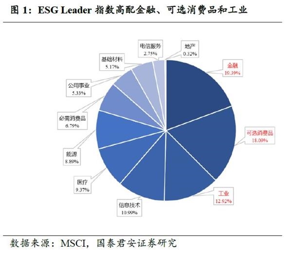 ESG Leader指数超配可选消费品、金融和工业。美国ESG Leader指数涵盖了11个行业,其中可选消费品、金融和工业占指数涵盖投资权重50.4%。与ESG投资理念一致,消费、金融与工业最先面临环境、社会与治理相关的冲突,也形成更为完善的ESG运营框架,公司具更强的可持续性。