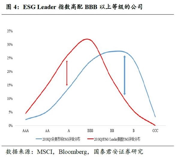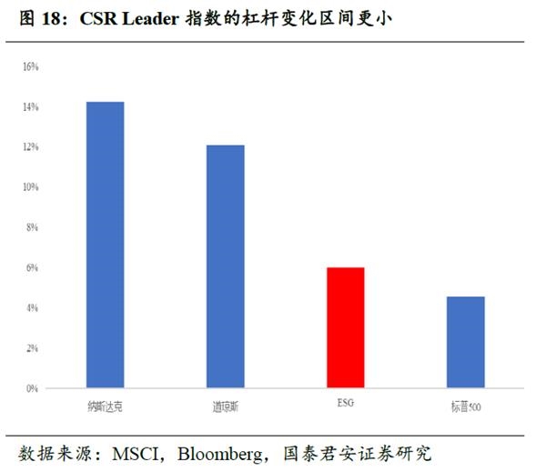 社会责任投资或将成为影响A股估值逻辑的重要因素。随着A股在MSCI指数中的比重进一步提升,更多的国际投资者将参与A股市场的定价。我们认为,伴随外资进入带来的社会责任投资的参与者增加,以及以ESG为代表的评价体系的完善,社会责任投资未来可能成为影响A股估值逻辑的重要因素。我们对美国MSCI的ESG Leader指数和成分公司的研究发现,ESG投资存在明显的超额收益,而其背后的来源是稳健的公司基本面与交易结构的改善。