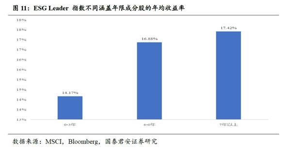 长期在ESG Leader指数中,标的获得更高的收益。与短期在ESG Leader指数的标的相比较,长期在ESG指数中的公司更符合ESG评价机制,形成更为鲜明的标签,吸引ESG投资者长期跟踪投资,形成相对溢价。