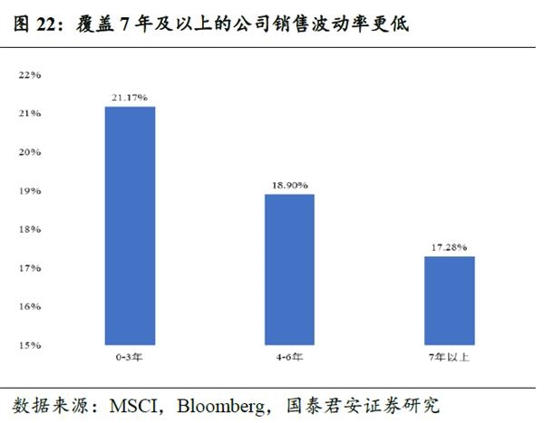 ESG表现稳定的公司具有更强的ESG“标签”:优中选优的龙头公司和更低的风险偏好。第一,长期在ESG Leader指数中的公司是优中选优的龙头公司,行业中竞争优势明显,具有更大的资产规模和销售规模。第二,该类公司具有更低经营风险偏好,我们发现长期在ESG指数中的公司具有更强的风险控制意识,反应为更低的资产负债率和销售波动率。我们发现,作为结果,相较于短期在ESG Leader指数中的股票,长期在指数的公司具有更高的PE估值,说明指数成分内的比较来看,长期有ESG标签的公司,能够吸引更多同类型偏好投资者,形成抱团的“估值溢价”。