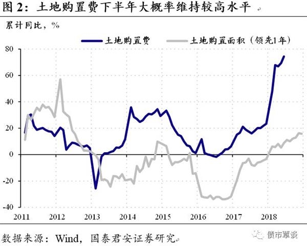 土地成交仍然保持较高热度,地产投资仍将保有韧性。土地购置费用仍然保持较高增速,考虑到融资偏紧的情况下,地产企业的土地购置费用缴纳可能尽量滞后(原则上最长1年),2017年下半年的土地购置高增速也将支持2018年下半年的土地购置费用确认。