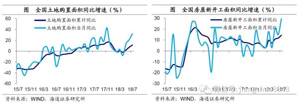 土地购置、新开工增速双双回升。地产销售回升令1-7月房地产企业到位资金增速回升至6.4%,创年内新高。而受到位资金增速回升带动,7月土地购置、新开工面积增速双双回升,其中新开工增速回升也与低基数有关。