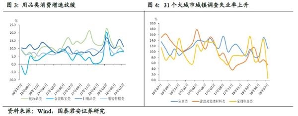 但食品和用品类消费增速放缓显著。其中,粮油、食品类消费大幅放缓3.5个点至9.5%,服装鞋帽类放缓1.3个点至8.7%,化妆品类放缓3.7个点至7.8%,日用品类放缓4.5个点至11.3%。