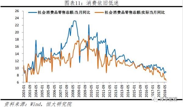 六、消费持续低迷需要重视,跟居民收入下降、股市下跌、P2P暴雷、房贷负债过高等有关。各种现象表明,居民消费出现降级。