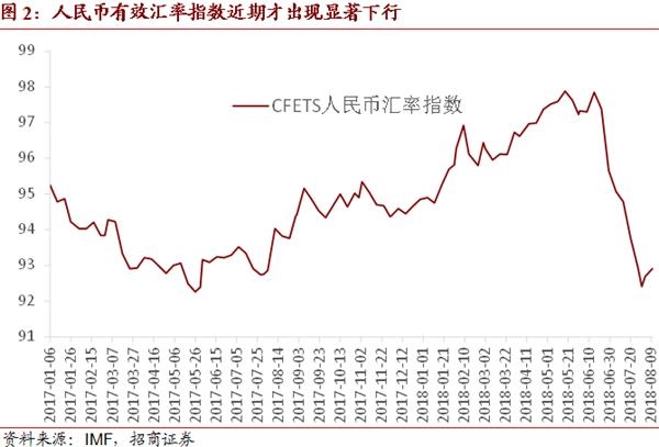 其次,篮子货币汇率走势对人民币汇率影响显著。从2015年8月汇改特别是2016年年中以来,人民币汇率与美元指数代表的篮子货币走势就呈现密切的相关关系:“美元强,人民币弱;美元弱,人民币强”。美元指数从2016年末高点的103.29下滑至2018年2月中旬的阶段性低点88.57,走弱14.3%;同期,人民币汇率从低点的6.96回升至6.30,升值幅度达9.5%;这体现了美元弱,人民币强的关系。从2018年3月底开始美元指数走强,从低点的88.57回升到8月13日阶段性高点的96.53,回升9.0%;同期,人民币汇率由高点的6.27贬至低点的6.88,贬值9.7%;体现美元强,人民币就弱的关系。不过,与2015年至2016年不同的是,美元指数出现过冲高回落的走势,我们在《再谈强美元是把双刃剑》中强调的美国经济基本面对美元指数走高幅度的约束作用已有体现。这使得市场不再像2016年底美元指数持续走高时那样认为美元指数可能将冲击120甚至更高的高点,而是更为理性看待美元指数走强的程度。既然大家不认为美元将持续冲高,因而对人民币汇率走弱的担忧也有所减弱。