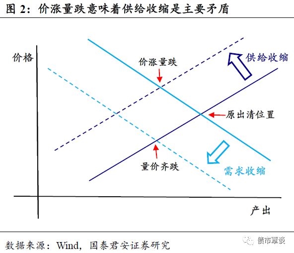 从供需角度分析,滞胀意味着供给侧是主要矛盾的来源。滞胀对应的量价组合是量跌价涨,对于封闭的经济体来说,这意味着主要矛盾来自于供给侧。否则,如果需求收缩起主导作用的话,将会是量价同涨同跌的组合。