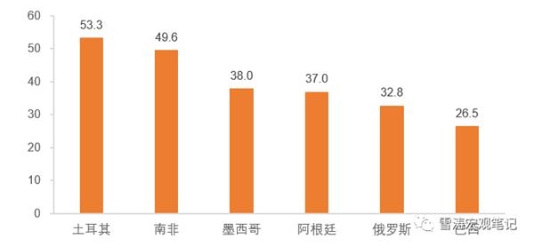 | 资料来源:CEIC,天风证券研究所注:埃及和南非为2017年数据,阿根廷为 2018年最新数据 |