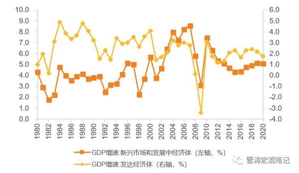 | 图1:发达国家和新兴国家实际GDP增速及预测 |
