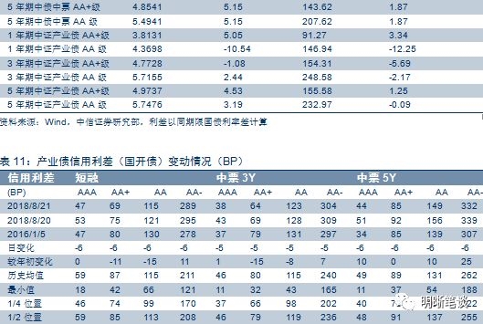 8月21日,债券收益率长、中、短端全面上行。其中AAA中票1Y上行7BP,3Y上行9BP,5Y上行6BP;AA中票1Y上行7BP、3Y上行9BP、5Y上行6BP;AA-中票1Y上行7BP、3Y上行9BP、5Y上行6BP。