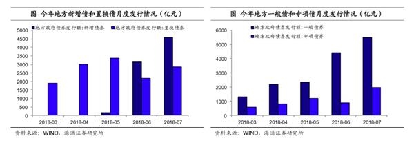 上半年地方债更侧重于推进债务置换,新增债发行较少。从地方债募集资金用途看,今年1-7月地方债发行的主要是置换债,累计发行有超过1.37万亿,而新增债从5月份才开始陆续发行出来,6月和7月发行量逐渐上来,分别有3157亿和4614亿,合计仅0.8万亿左右。可见此前地方债发行工作中,更侧重于推进债务置换进程,而新增债券发行相对较少。
