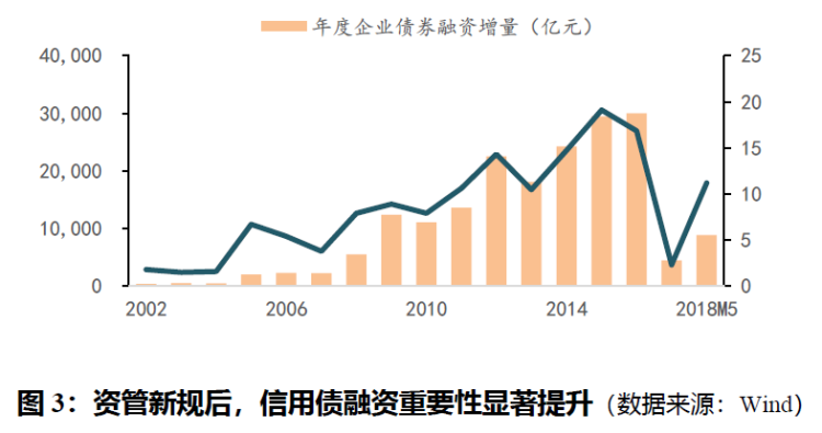 三是防止资管新规“单兵突进”导致的不配套风险,通过新行资产证券化产品的形式“非标转标”,承接过渡期内无法满足的融资需求,确保社会信用基本需要。