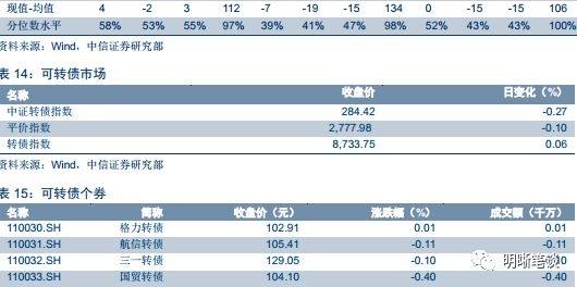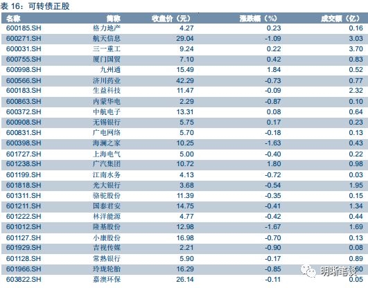 本周三沪深两市同向变动,尾盘上证综指下跌0.31%,下跌0.64%。上周中证转债指数小幅收涨,但成交量仍在持续收缩。伴随着近期供给的持续加速,新上市标的成为转债市场近期为数不多的亮点,就上周表现而言不少新券表现优于存量标的。而上周市场也出现八月以来首支上市未破发的标的,与此同时不少上市初日表现不佳个券也重新回到面值以上。多数新券相较存量标的而言不管是溢价率还是绝对价格均处于更优位置,我们也曾多次强调可以重点关注新券上市的博弈机会。综合来说,未来一个月供给或仍处于较高位置,随着市场的扩容新券的出现也一定程度上拉低了溢价率水平,提高了可供选择标的的绝对数量,给市场注入了一丝生机。另一方面,对于存量标的而言,溢价率处于目标区间内标的数量仍未出现明显改善,强者恒强的逻辑或将继续延续。具体策略层面,短期而言转债市场的分化趋势可能持续,整体性的布局机会尚未出现,但随着新券上市低溢价率个券支数已经开启恢复通道,这不失为一个可喜的边际变化,若权益市场情绪回暖转债市场值得参与的标的数量并非稀有。因此建议关注溢价率处于目标区间的存量标的以及新上市标的的博弈机会。具体标的建议关注东财转债、三一转债、崇达转债、星源转债、景旺转债、博世转债、新凤转债、安井转债以及银行转债。