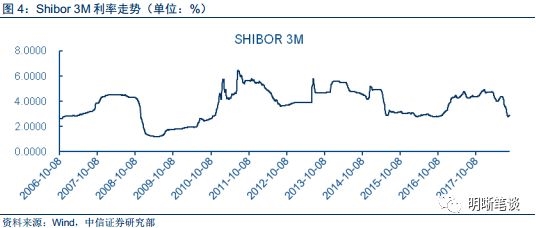 我国的货币政策在2000年以来大致经历了四次收紧,并不是所有的收紧都是因为通货膨胀。在2016年10月,Shibor 3M 上升,金融市场资金利率上升,流动性收紧。央行从10月份开始重启14天、28天逆回购,这导致了金融市场在7天以及以下期限的流动性不足和资金利率的上升,央行以此引导高杠杆的债券市场调整。在很大程度上,这一政策也与决策层金融监管趋严、以及降杠杆和防风险的基调趋于一致。从中央经济工作会议透露出的信号可以看出,金融去杠杆趋势已经非常明显,央行货币政策转向稳健中性。从金融系统风险角度看,这种缩短放长提供流动性的方式,推动了债券市场的良性调整。此次的货币政策收紧和通货膨胀率无关,通货膨胀率在政府的通胀目标之下。