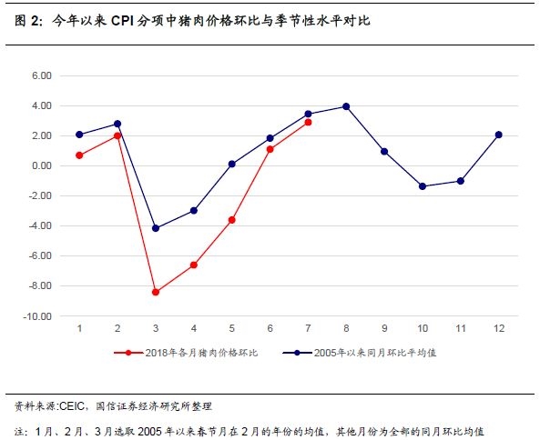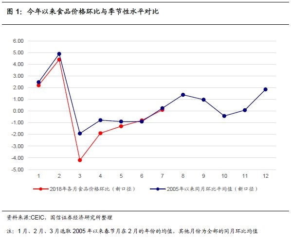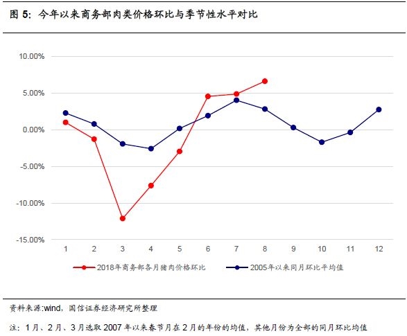 我们将2005年以来各月环比均值作为季节性指标,通过比较今年以来各月食品价格环比与季节性水平,进而判断今年以来食品价格走势的强弱。