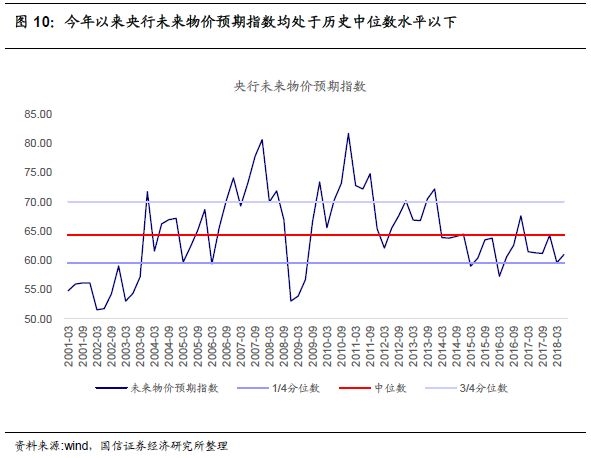 一方面,猪肉价格受疫情影响涨幅最大是发生在2011年,而2011年生猪疫情爆发时,国内通胀预期很强烈,央行未来物价预期指数创下历史最高值,而当前国内的通胀预期较弱,央行未来物价预期指数处于历史中位数水平以下,预计即使今年非洲猪瘟疫情继续发酵,猪肉价格也难以像2011年那般大幅上涨。