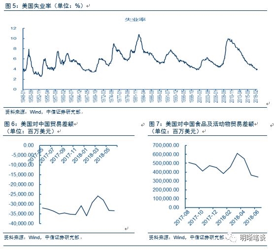 国际贸易争端不断,外部经济环境较为严峻。国际贸易方面,目前北美贸易谈判尚未完成,但已接近尾声,美国与墨西哥已就修订协议初步达成一致,但加拿大方尚未表态。《美墨贸易协定》收紧了墨西哥对美汽车出口规定并保持了农产品零关税贸易,但考虑到北美贸易达成一致作为“双赢”格局,对两国均是利好消息。虽然目前加拿大尚未表态,比索和加元对美元汇率上行已在一定程度上反映了人们对此持有乐观情绪。但是,中美贸易战自今年三月打响后,美国对中国贸易逆差有一定程度回升,但近来逆差不断扩大。其中,中国作为美国的第二大农产品出口国,中方对美国农业采取反制裁措施使得美国对中国的食品及活动物的出口金额甚至低于贸易战前,给美国的经济带来较大的下行压力。国际资本流动方面,今年三月以来,不断走软的美元指数给国际资本的流入带来一定压力。